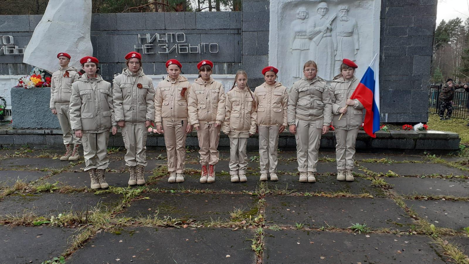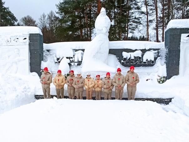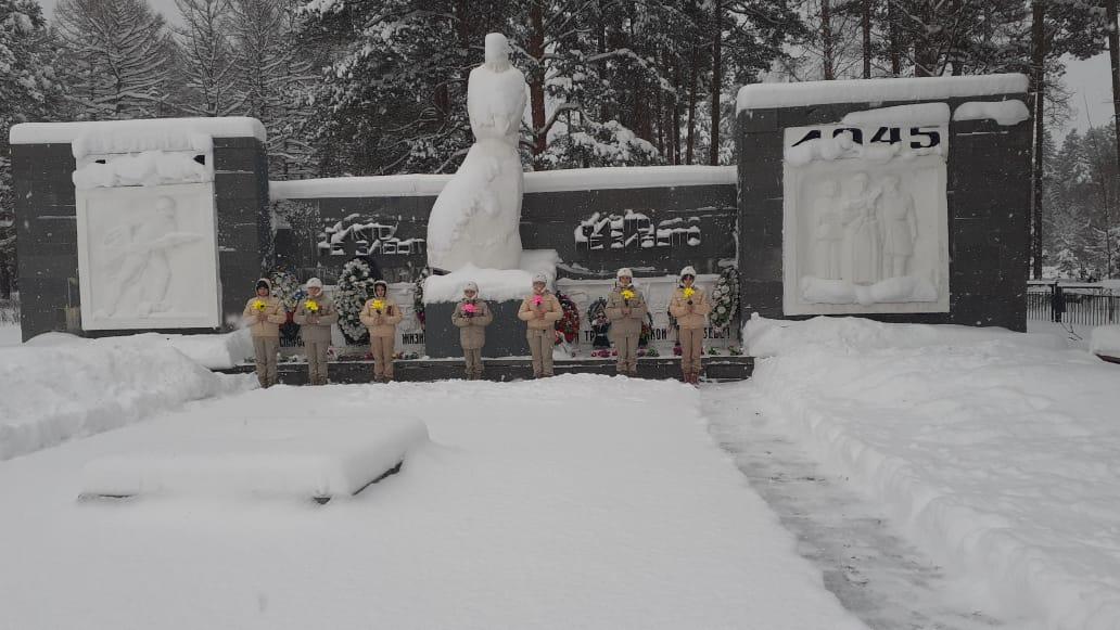 В День защитника Отечества юнармейцы отдали дань памяти героям ВОВ проведя в ур. Бобово минуту молчания и возложение цветов к обелиску и на братскую могилу.