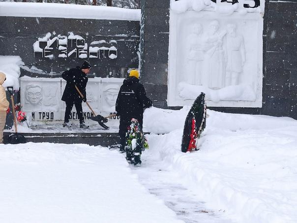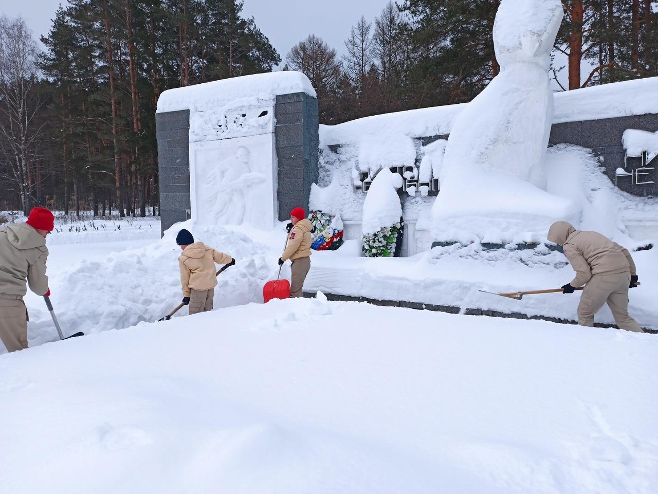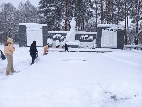 Волонтёры и юнармейцы ООШ1 пгт. Спирово расчистили снег у монумента и на братском захоронении гражданского кладбища в ур. Бобово.