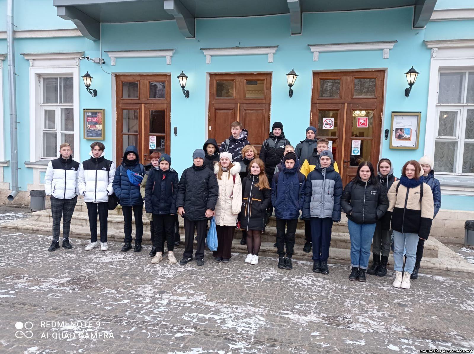 20 января 2022 учащиеся 8-9 классов посетили театр в Вышнем Волочке. Спектакль назывался "За чем пойдешь, то и найдешь" по произведению А.Н. Островского "Женитьба Бальзаминова". Затрагивается тема выживания в обществе.
