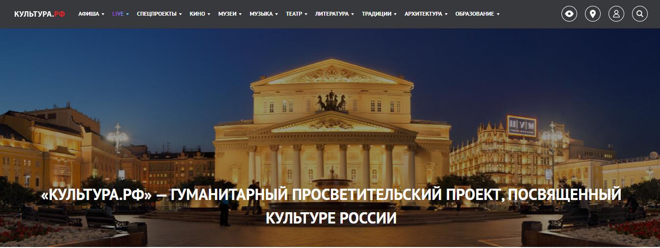 Флагменский проект Министерства культуры РФ является портал КУЛЬТУРА.РФ https://www.culture.ru/about
