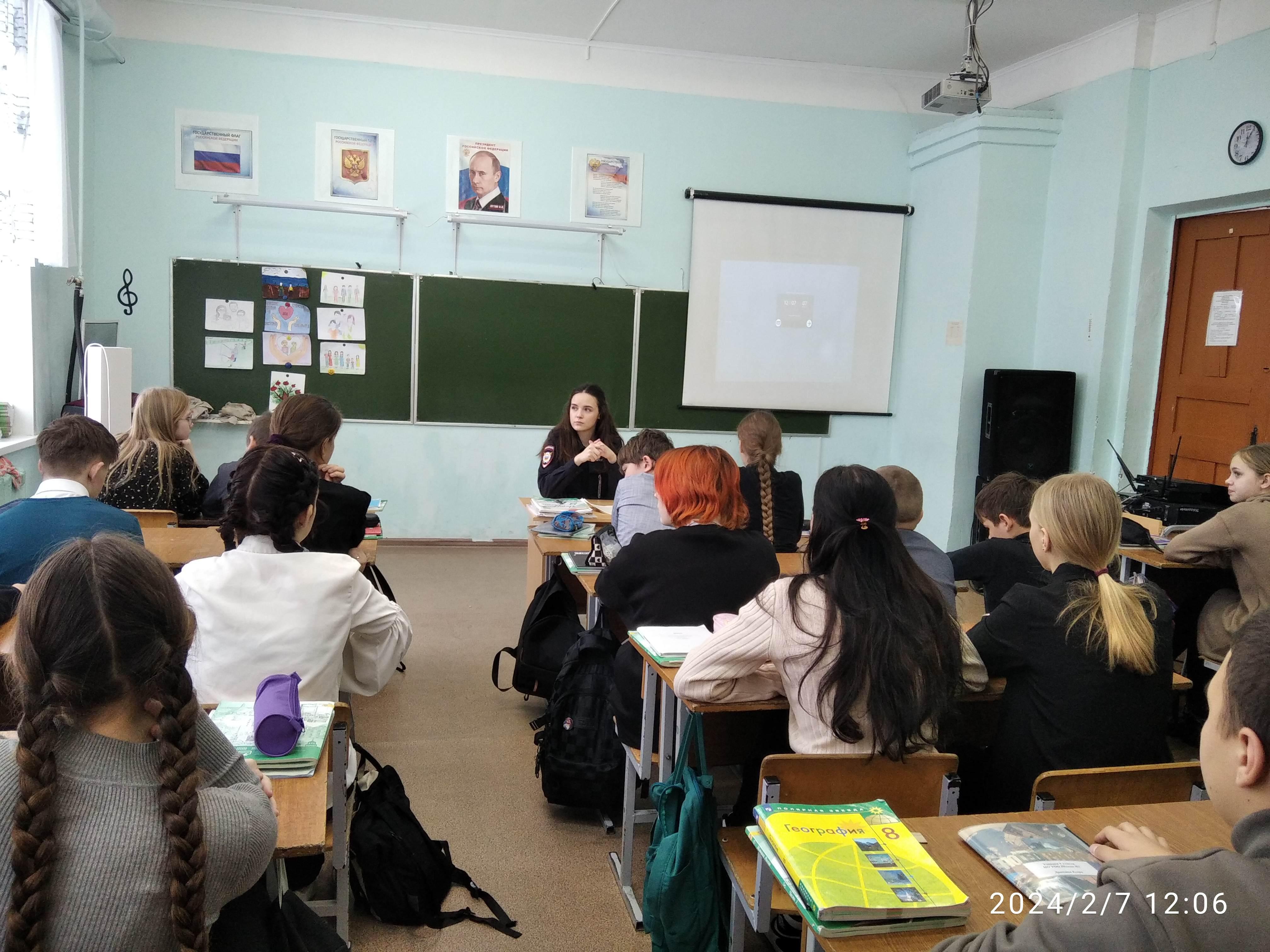 7 февраля в МОУ ООШ № 1 пгт Спирово Инспектор по делам несовершеннолетних Вишнякова А.В.для учеников 6,8 классов провела информационную беседу на тему "Способы и формы распространения украинскими спецслужбами ложных сведений ,направленных на формирование конфликтных ситуаций внутри РФ". "Участие в несогласованных публичных мероприятиях" .